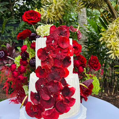We deliver and set up your wedding cake safely for a fee to any venue in Honolulu and Oahu. Fees are based on distance and are as follows: Honolulu metropolitan area $50, Hawaii Kai $70, Kailua/Kaneohe, Miilani, Hickam, Waikele, Pearl City $100, Ko'olina, Kapolei, Kualoa Ranch $140, North Shore $200.